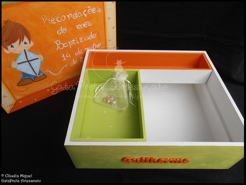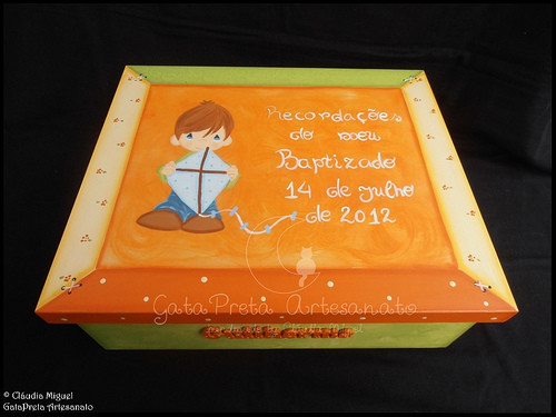 Hoje trago-vos esta caixa de batizado, para guardar a vela, a toalha de batismo e também a roupinha deste dia.