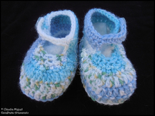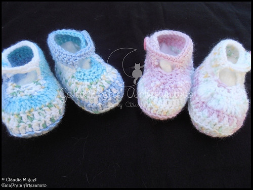 Como estão uns dias um pouco "xoxinhos", com chuva e mais frescos, achei que era uma boa altura para aconchegar com esta mantinha e estes sapatinhos de bebé!