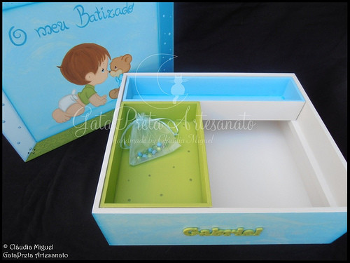 Esta semana começa com duas caixas de menino para guardar todas as recordações de batizado.