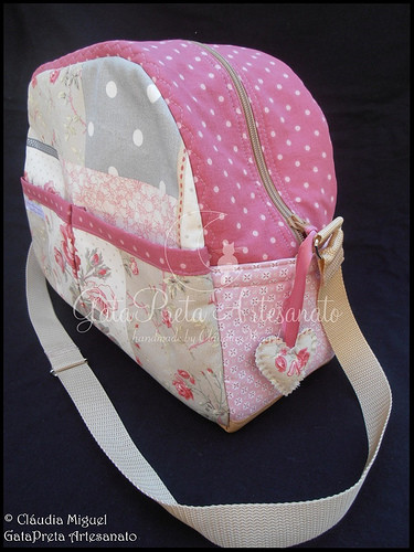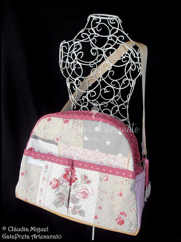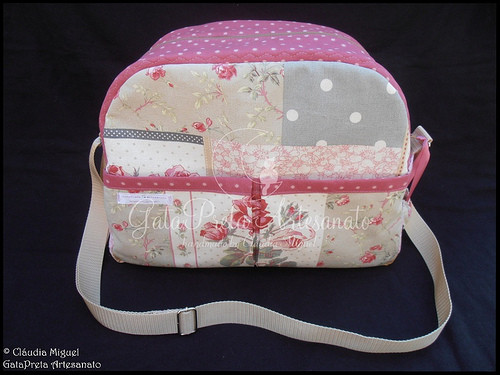 Mala de maternidade: aprox 40cm de comprimento; 30cm de altura; 16 cm de largura; alça regulável