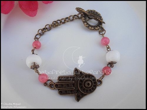 Com contas de cristal de vidro, contas de pedra natural e em bronze.
