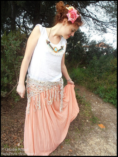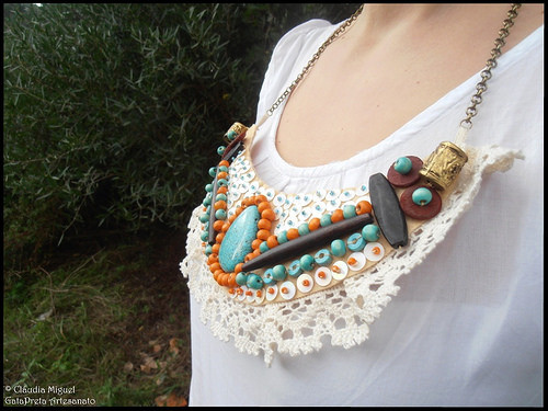 Sugestão de utilização do maxi-colar "Turquesas&Rendas".