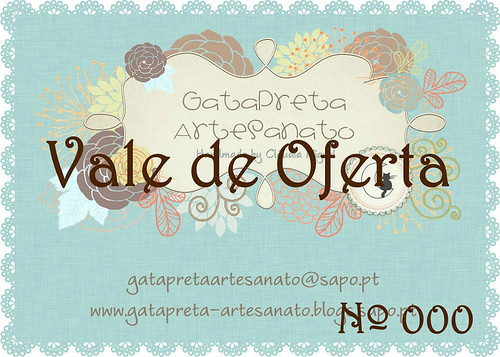 Para pedir o seu vale de oferta basta entrar em contacto comigo para o e-mail: gatapretaartesanato@sapo.pt. Quaisquer informações adicionais poderão ser solicitadas por e-mail.