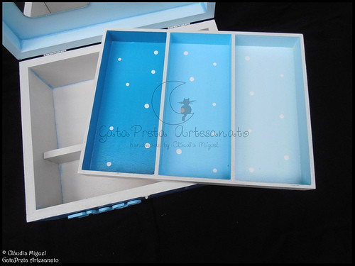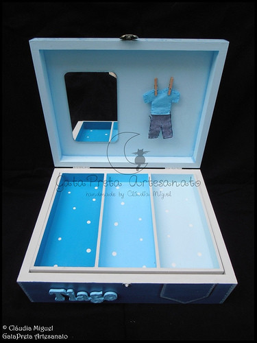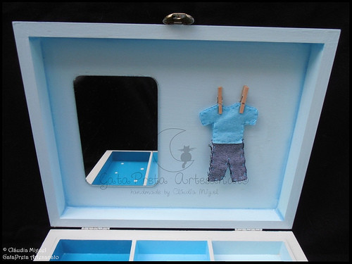 No interior da tampa: aplicação de espelho e fatinho de menino.