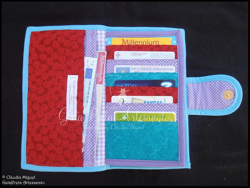 Aqui, recheada com vários cartões, notas e cheques.
