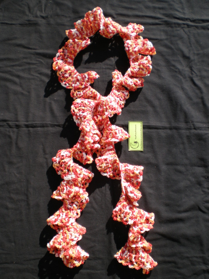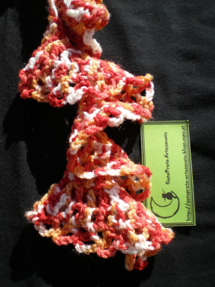 Aqui fica mais um cachecol dos caracolinhos, desta vez em tons de laranja e vermelho...