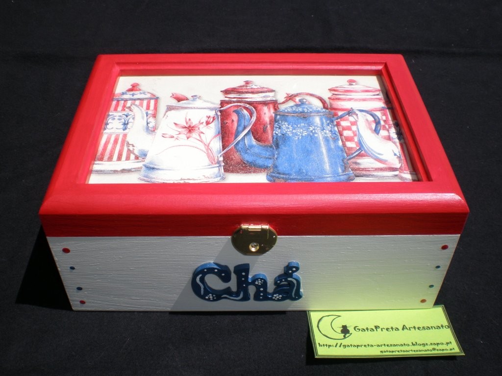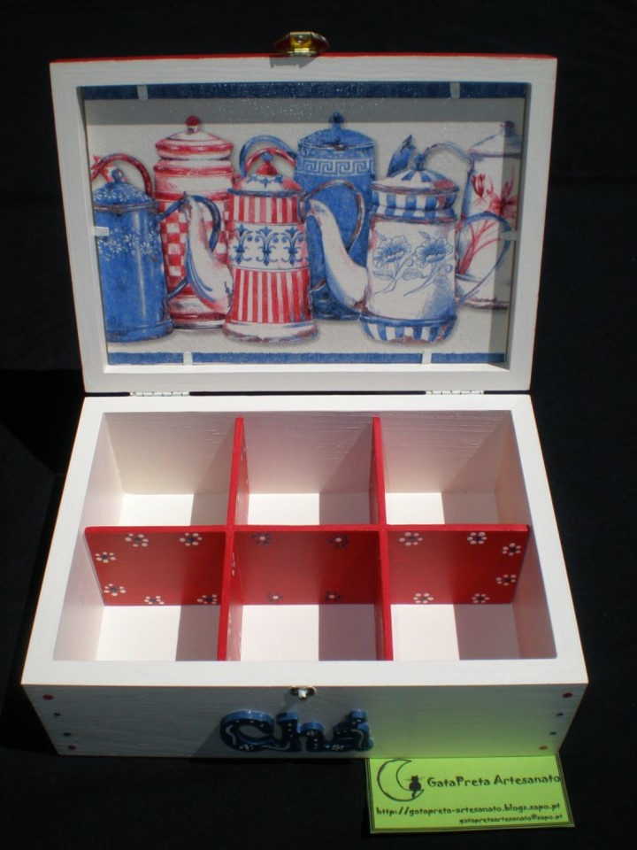 Mais uma caixinha para guardar os pacotinhos do chá, desta feita em vermelho e azul escuro...