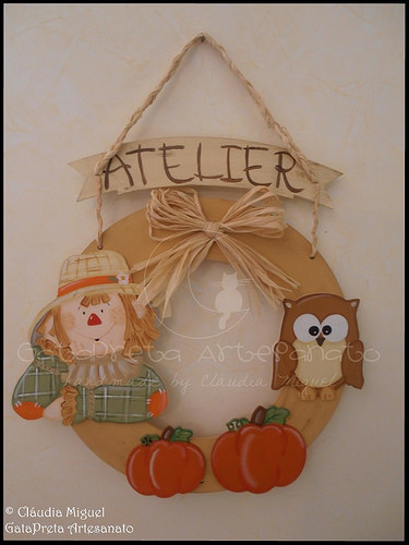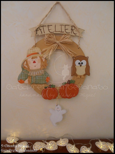 Fiz para a porta do atelier GataPreta Artesanato. Cheia de pormenores desta estação outonal.