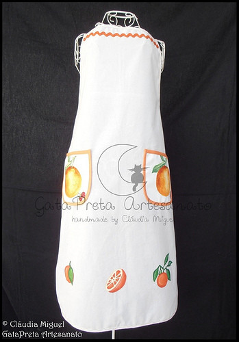 O avental em pormenor, também diferente dos anterior conjuntos de cozinhas: apresenta a palicação de um tecido diferente para o bolso.