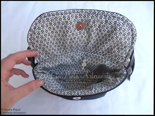 Pormenor do interior, onde cabe o telemóvel, chaves de casa e carro, carteira, lenços de papel, ...