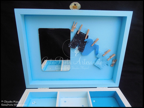 O interior com as 4 caixinhas para as seguintes recordações: "O meu cordão umbilical", "A minha pulseira", "O meu 1º caracol" e "O meu 1º dente".